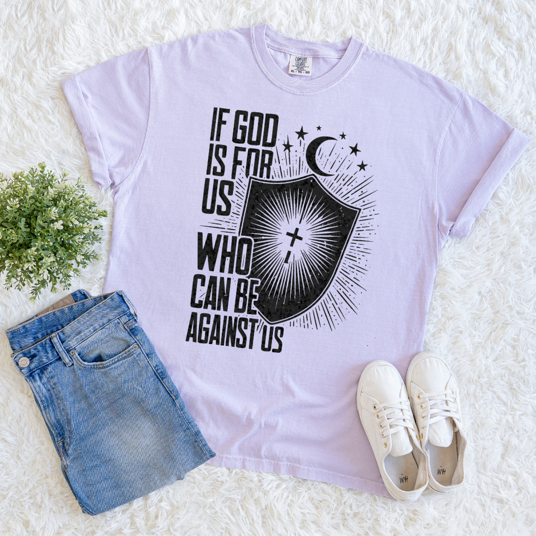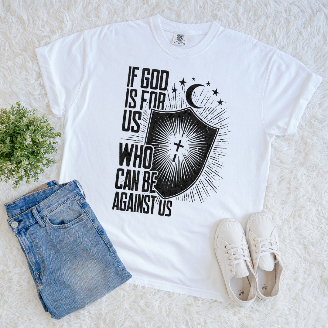Stand unshaken with the If God Is for Us T-shirt, featuring the bold assurance from Romans 8:31 that if God is for us, who can be against us. This Christian shirt inspires you to trust in His unstoppable support, sparking conversations about His power. Wear it to plant seeds of hope and encourage others to rely on His defense, uplifting souls one at a time.