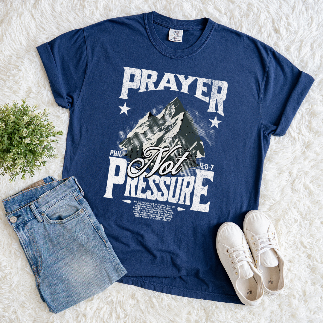 This shirt is a gentle reminder to slow your heart and lay it all down. Life will always try to rush you, demand answers, and pile on expectations — but God invites you to pray instead of panic. To trust instead of strive. Wear it as a declaration that you don’t have to carry everything on your own. When the weight feels heavy, prayer makes room for peace, clarity, and God’s perfect timing. Let this shirt speak rest over your soul and remind others where true peace is found.